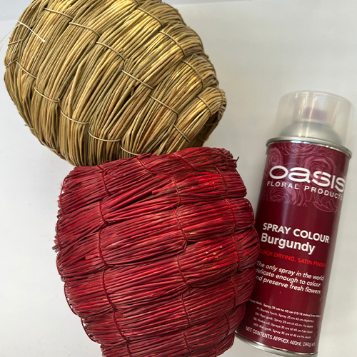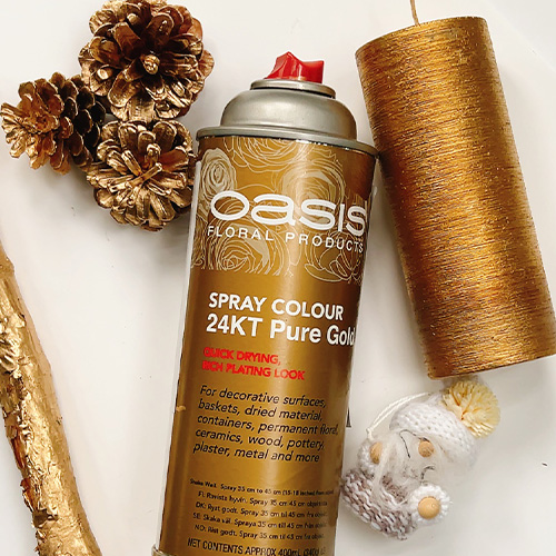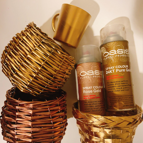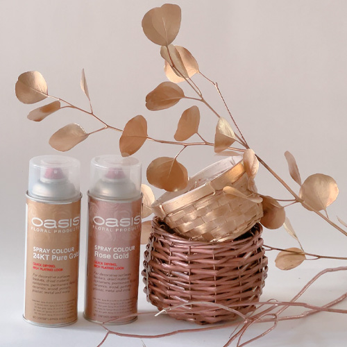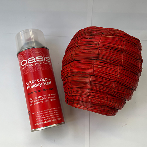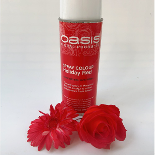 オアシススプレーのホリデーレッドの小花とブリリアントゴールドで色づけた容器。 -