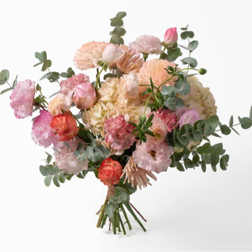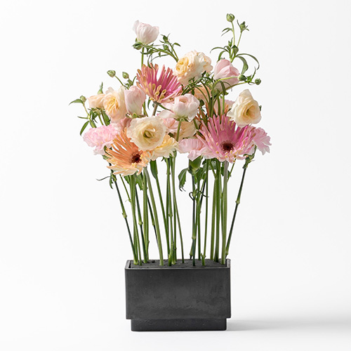 白いブリキ製容器と白い花をサーモンピンクに色づけ -