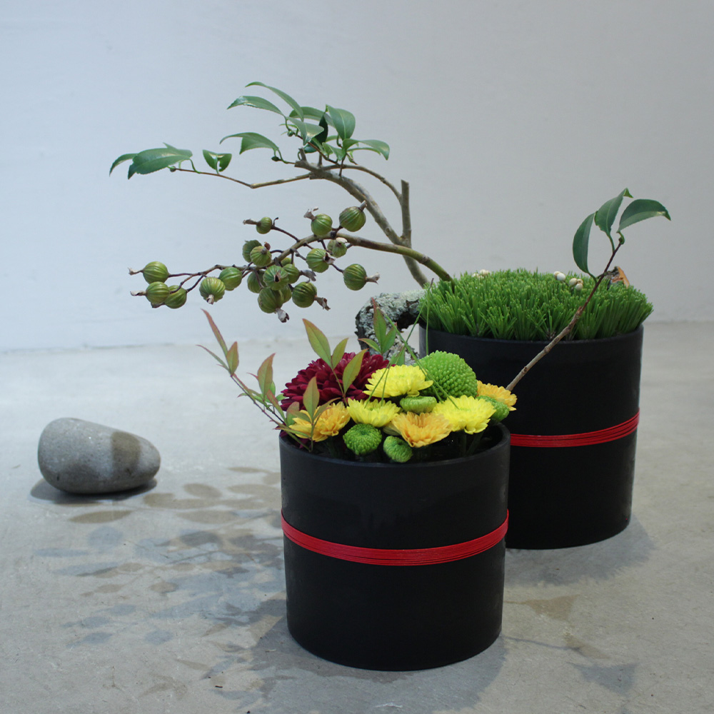 - ブラックエコは、透明な花器を作品の一部として捉えて表現するという手軽な方法でデザインの幅を広げる存在です。ブラックエコの黒は花との相性が良く、キャンバスのように自由な表現を可能にします。黒い花器に花を活けることで、生き物である花をオリジナリティあふれるギフトへと昇華させることもできます。