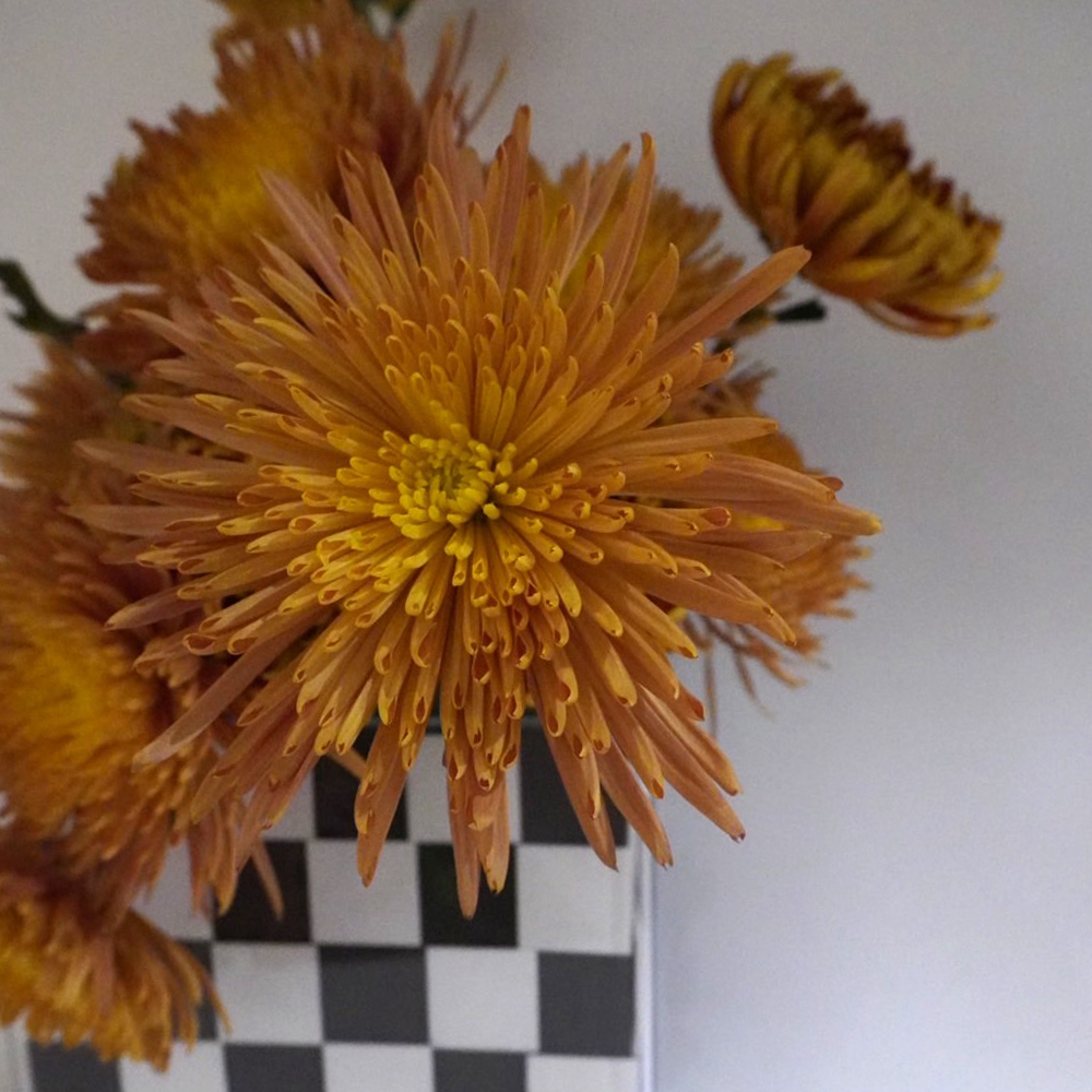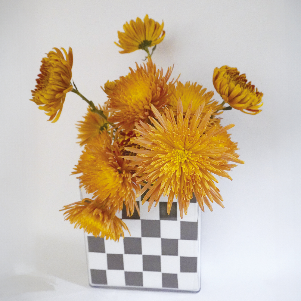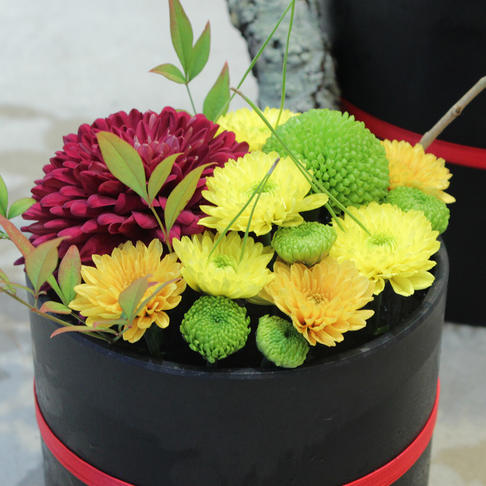 マムのアレンジメントは、ブラックエコを使用する事で、お花の使用本数を2割ほど減らせています。