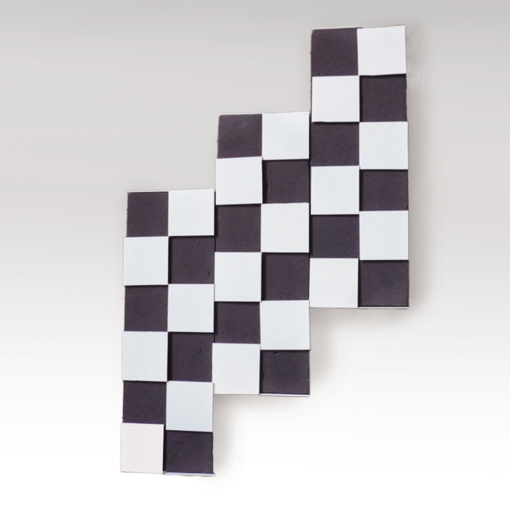 - 高さはブリック1個分。円形にカットしたブラックエコを、クリアガラスのベースに直接セットして制作。